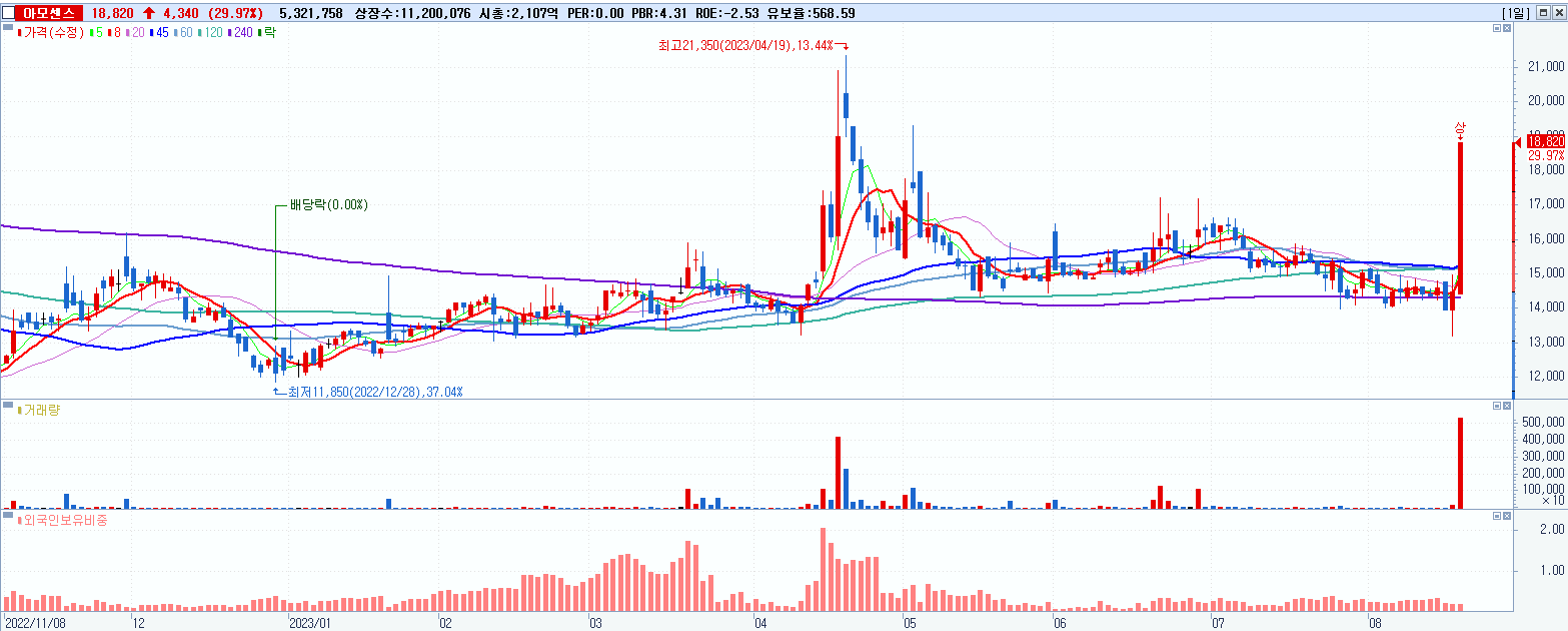 3.아모센스 18,820원 ▲ 29.97% (KOSDAQ, 357580)
