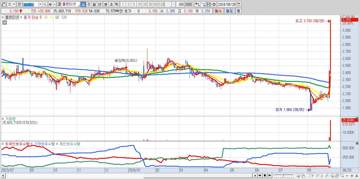플랜티넷 3,150원 ▲ 29.9% (KOSDAQ, 075130)