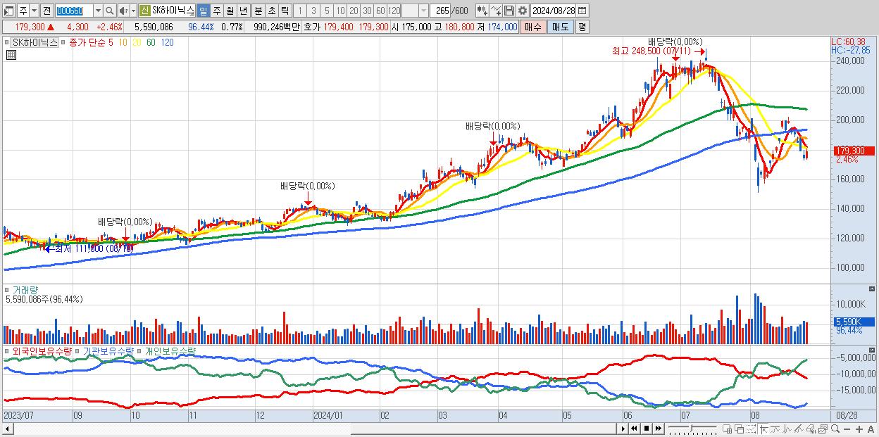 - SK하이닉스 (179,300원 ▲ 2.46% , 시총: 1,305,308억, 거래량: 5,590,086, 거래대금:9,902억)