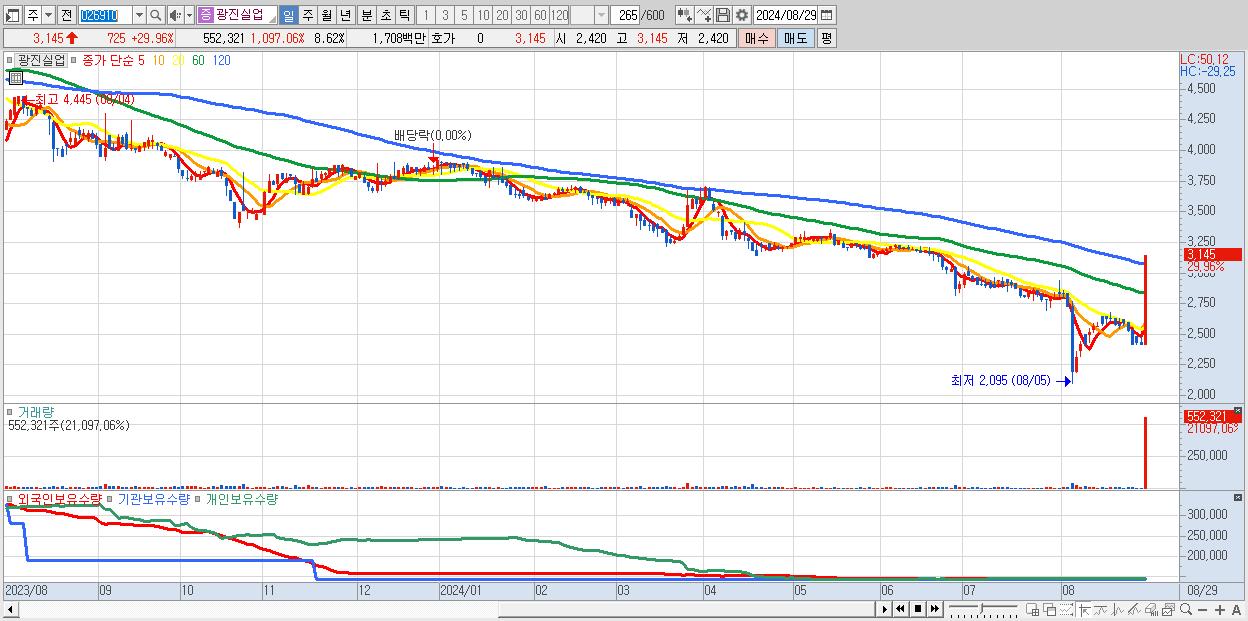 2.광진실업 3,145원 ▲ 29.96% (KOSDAQ, 026910)