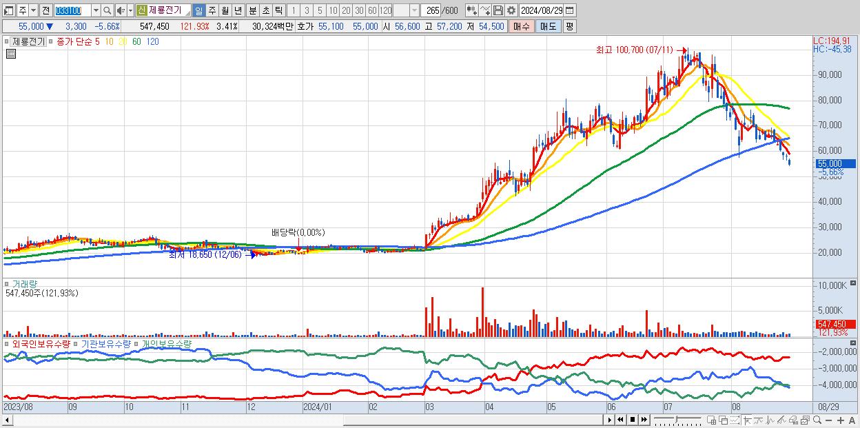 - 제룡전기 (55,000원 ▼ -5.66% , 시총: 8,834억, 외국인 순매수 거래금:49억)