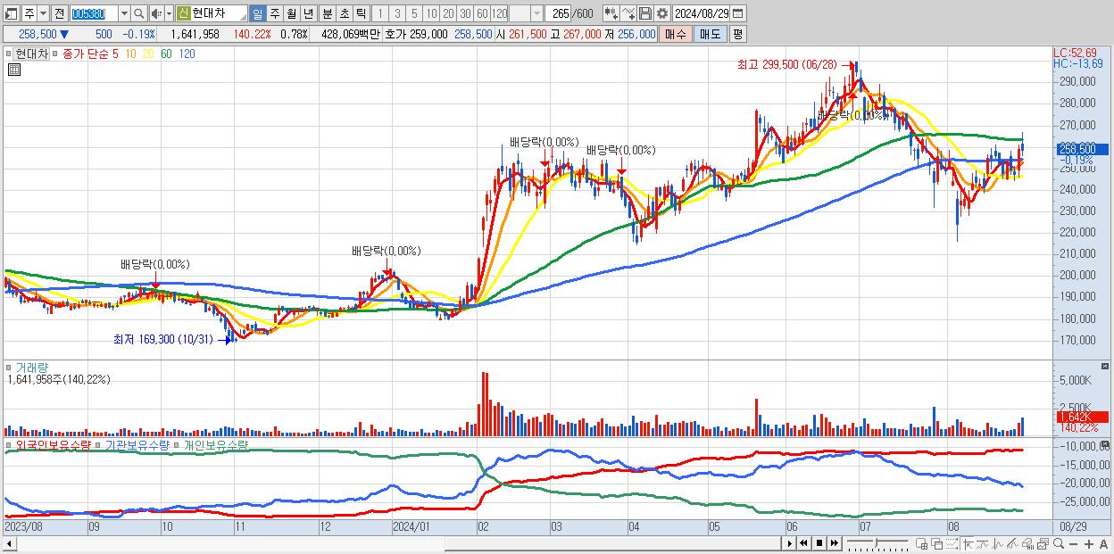 - 현대차 (258,500원 ▼ -0.19% , 시총: 541,341억, 외국인 순매수 거래금:475억)