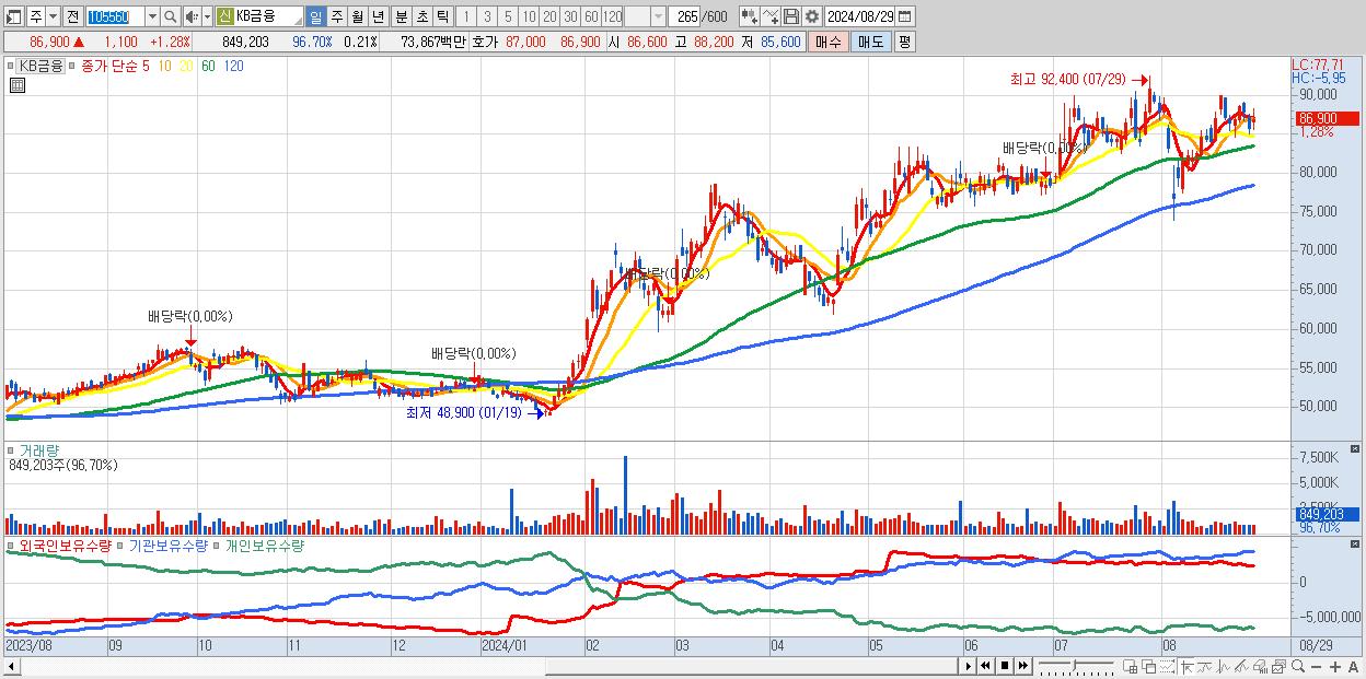- KB금융 (86,900원 ▲ 1.28% , 시총: 350,651억, 외국인 순매수 거래금:111억)