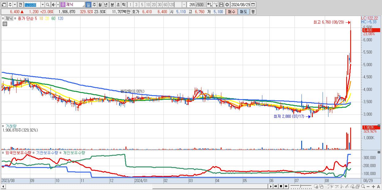 제닉 6,400원 ▲ 23.08% (KOSDAQ, 123330)