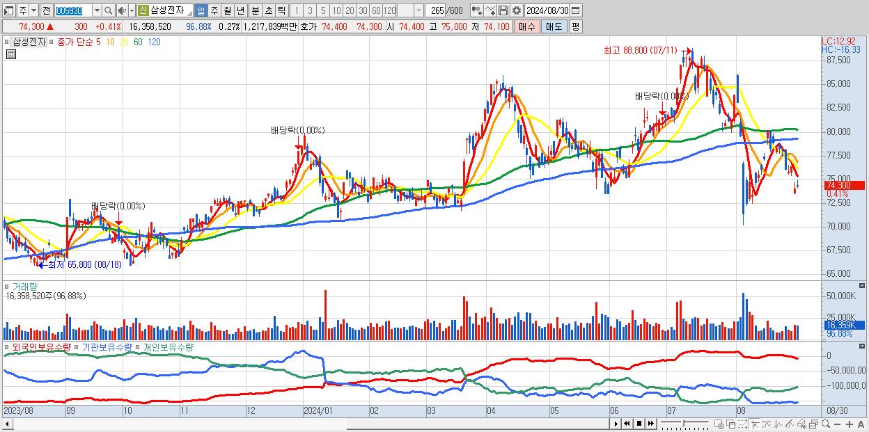 1.삼성전자 74,300원 ▲ 0.41% (KOSPI, 005930)