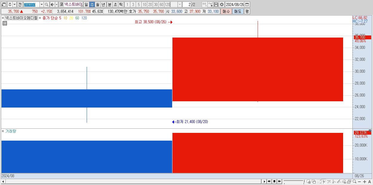- 넥스트바이오메디컬 (35,700원 ▲ 49.06% , 시총: 2,859억, 거래량: 29,127,410, 거래대금:9,537억)