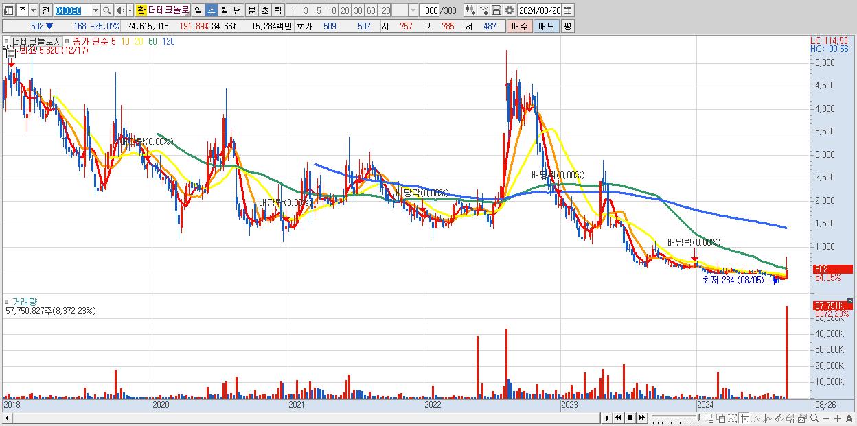 - 더테크놀로지 (502원 ▲ 64.05% , 시총: 356억, 거래량: 57,750,827, 거래대금:328억)