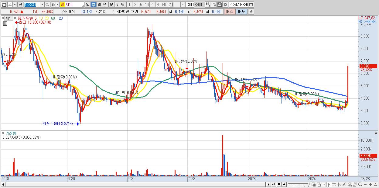 2.제닉 6,570원 ▲ 78.78% (KOSDAQ, 123330)