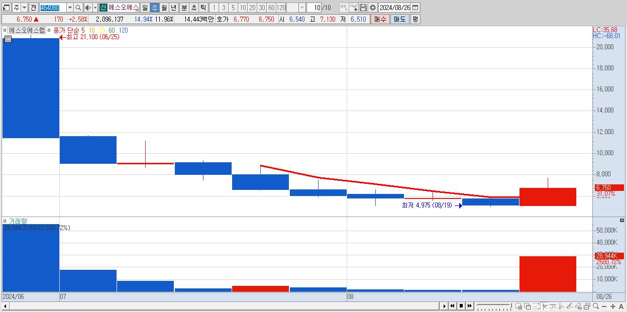 - 에스오에스랩 (6,750원 ▲ 31.07% , 시총: 1,183억, 거래량: 28,944,218, 거래대금:1,938억)