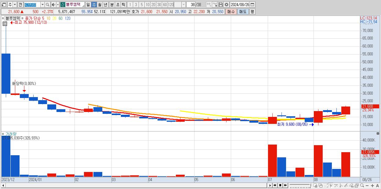 - 블루엠텍 (21,600원 ▲ 29.34% , 시총: 2,351억, 거래량: 27,085,030, 거래대금:5,310억)