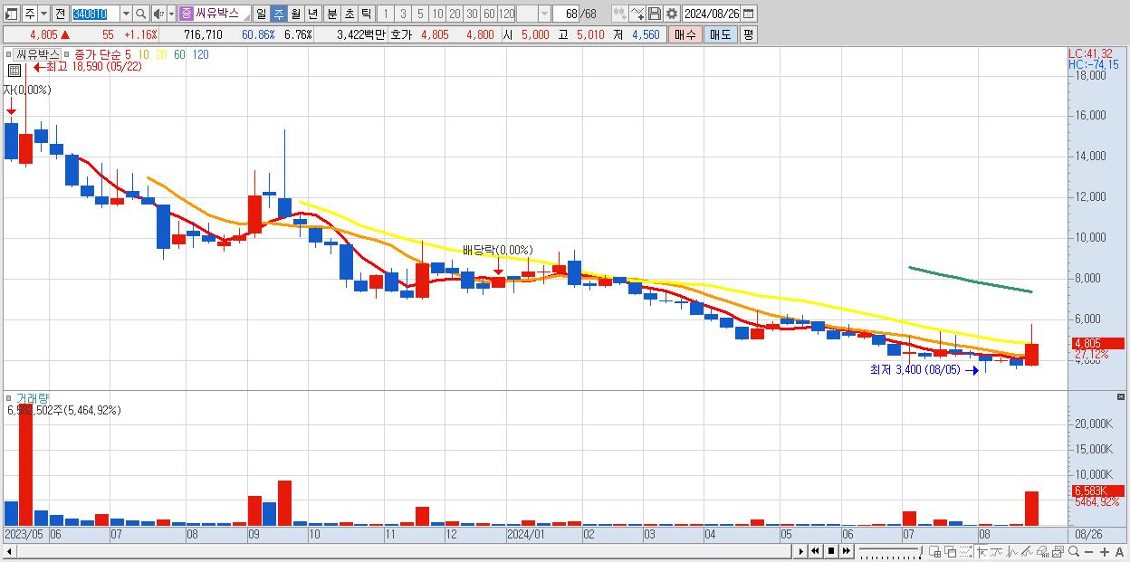 - 씨유박스 (4,805원 ▲ 27.12% , 시총: 509억, 거래량: 6,582,502, 거래대금:327억)