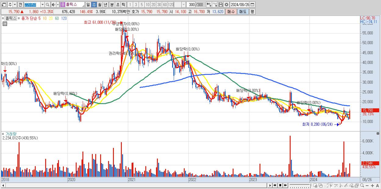 - 올릭스 (15,790원 ▲ 39.73% , 시총: 2,680억, 거래량: 2,234,012, 거래대금:315억)