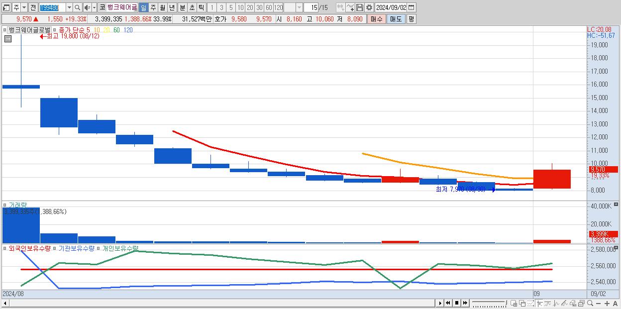 - 뱅크웨어글로벌 (9,570원 ▲ 19.33% , 시총: 957억, 거래량: 3,399,335, 거래대금:315억)