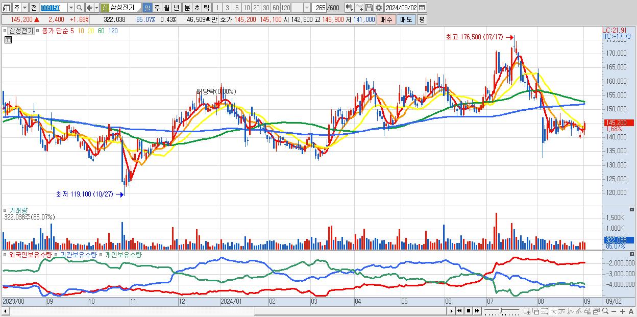 시총: 4,441,518억 거래량: 12,601,510 거래대금:9,352억 업종:전기전자