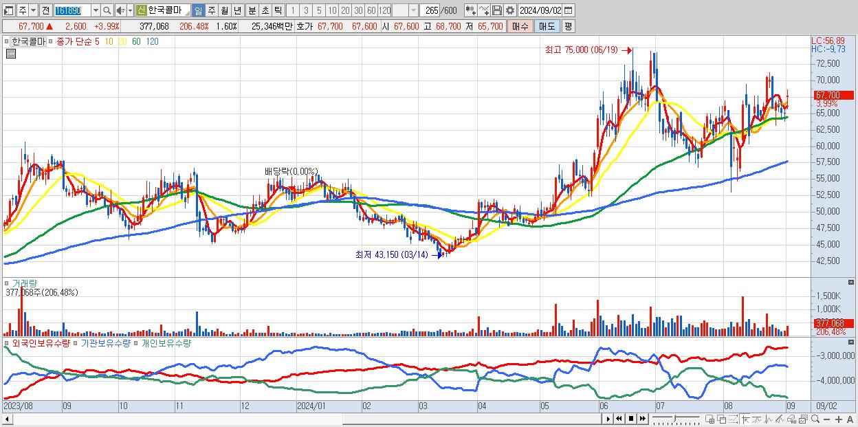 - 한국콜마 (67,700원 ▲ 3.99% , 시총: 15,981억, 외국인 순매수 거래금:51억)