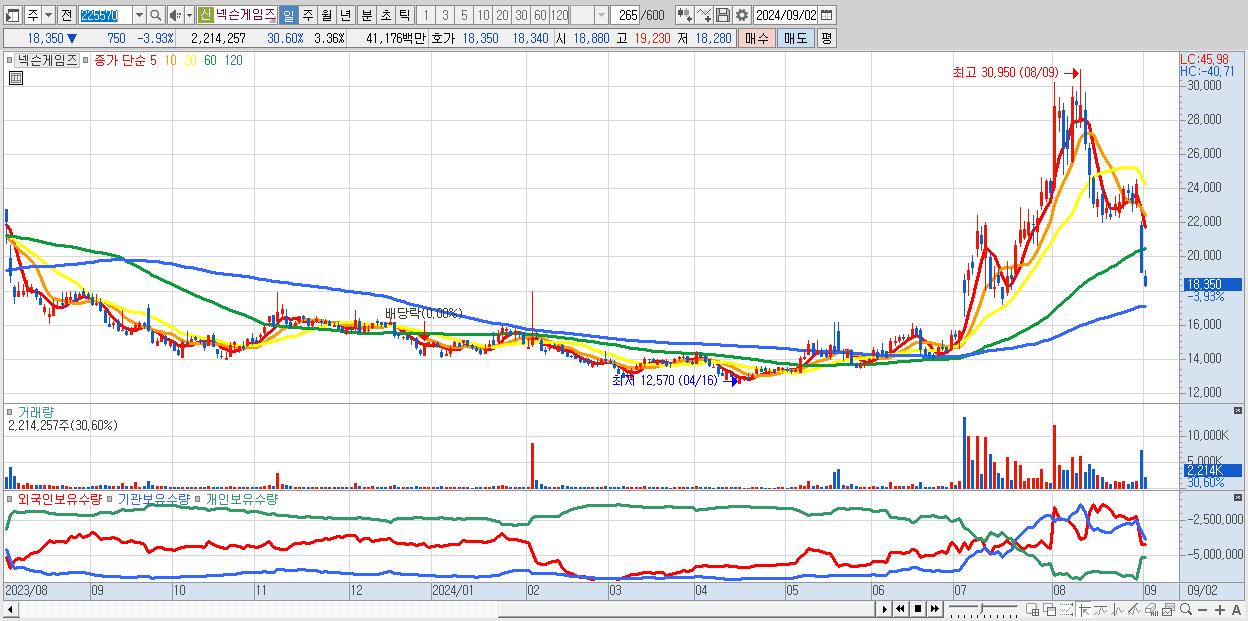 - 넥슨게임즈 (18,350원 ▼ -3.93% , 시총: 12,083억, 외국인 순매수 거래금:78억)