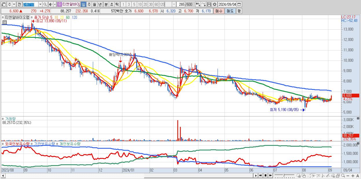 30.티앤알바이오팹 6,600원 ▲ 4.27% (KOSDAQ, 246710)