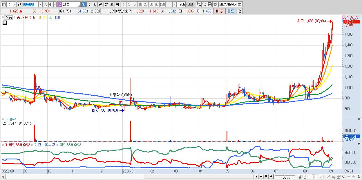 신풍 1,620원 ▲ 3.98% (KOSPI, 002870)