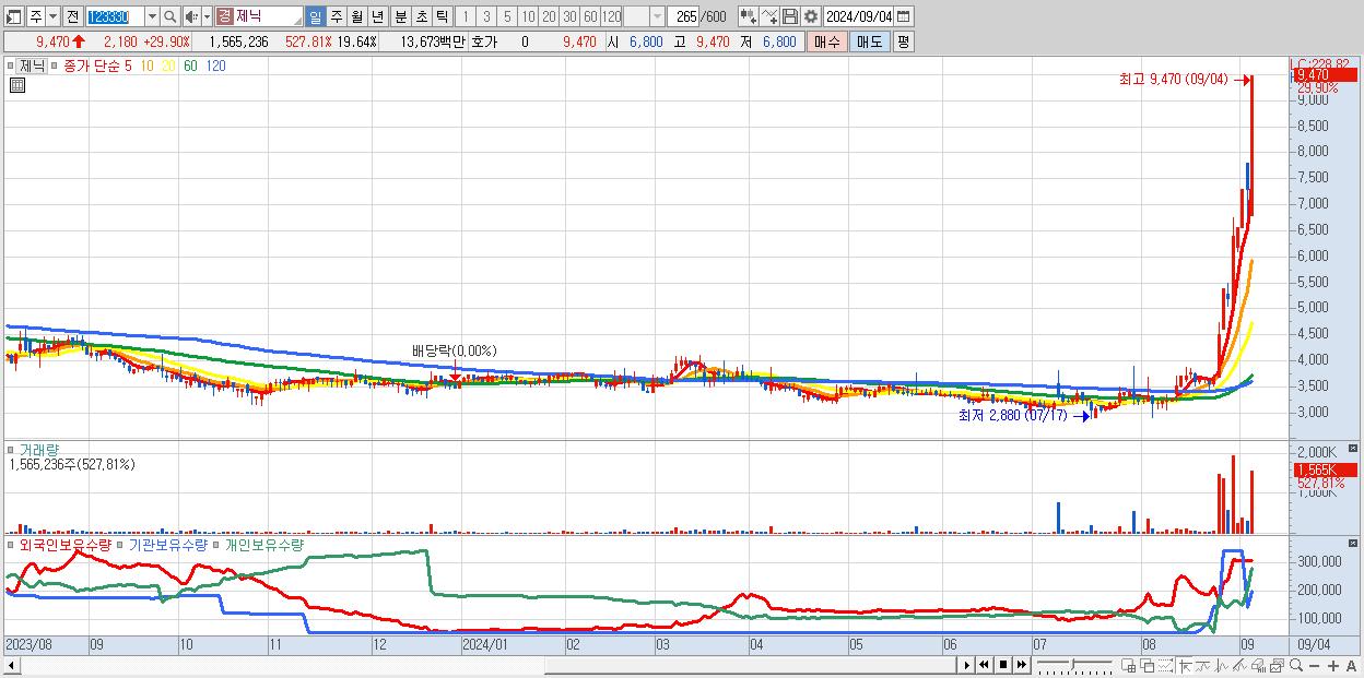 제닉 9,470원 ▲ 29.9% (KOSDAQ, 123330)