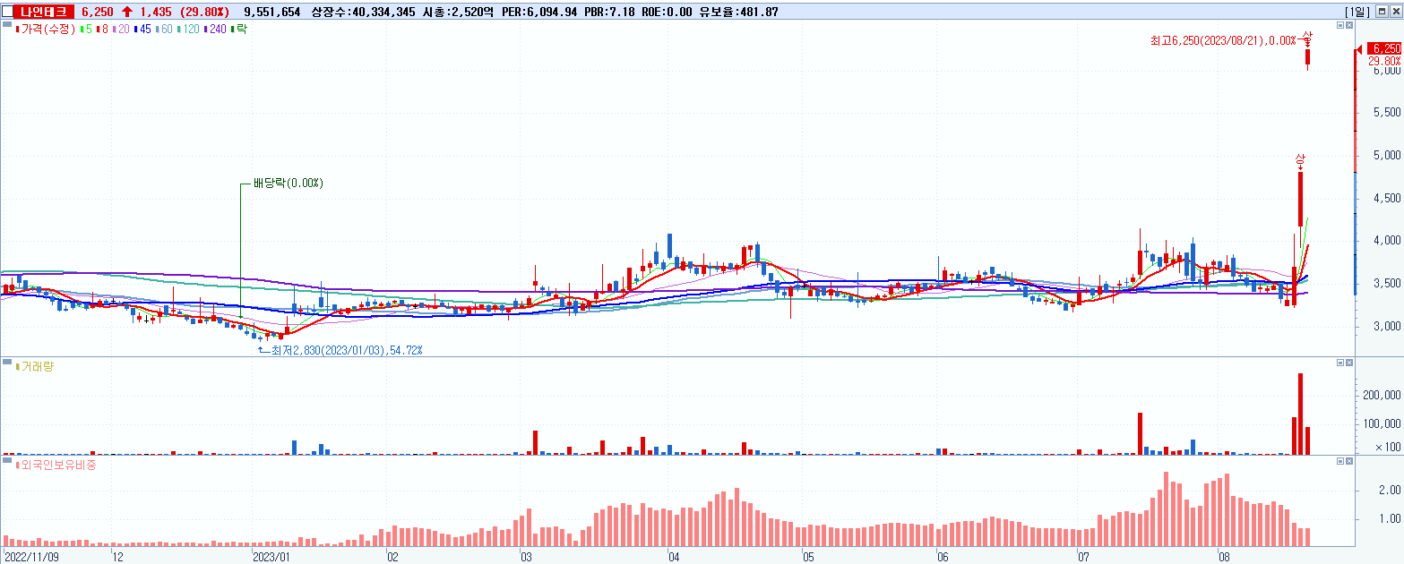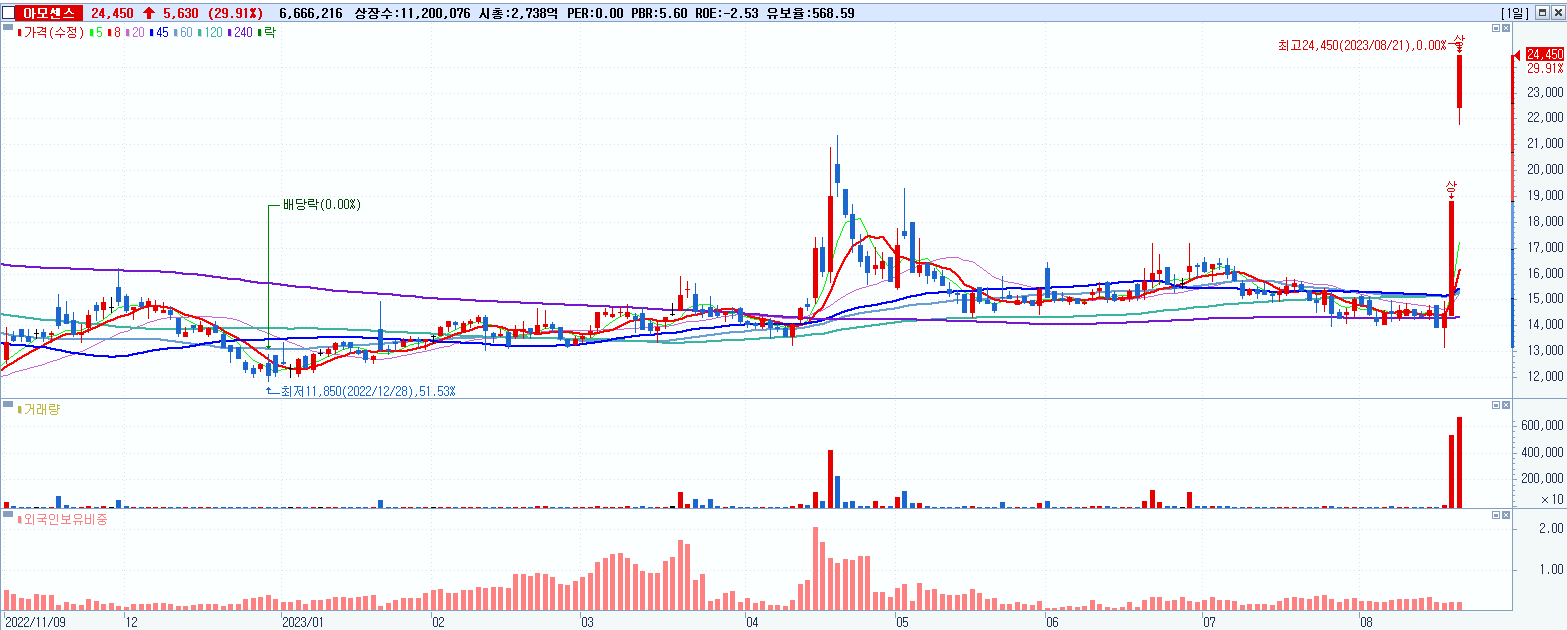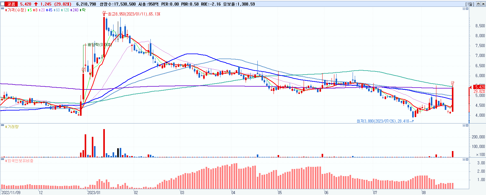 시총: 598억 거래량: 25,013,181 거래대금:455억