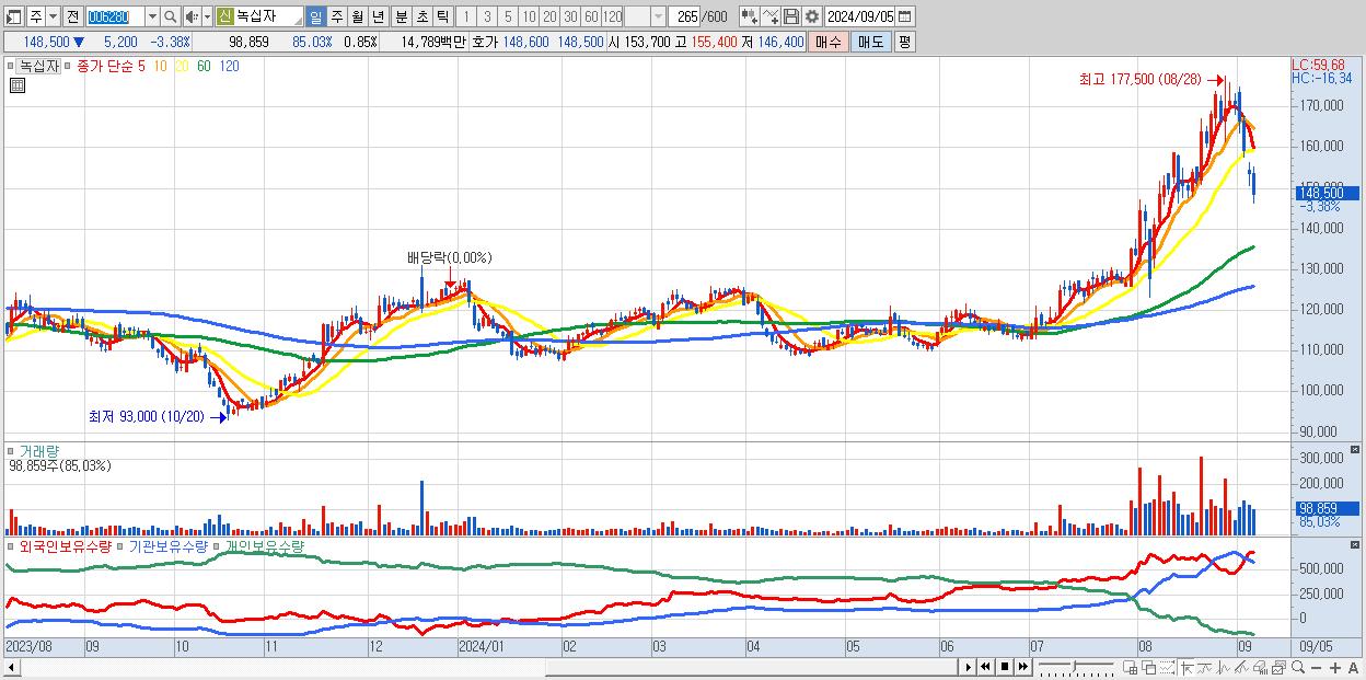 시총: 1,160,436억 거래량: 5,310,700 거래대금:8,461억 업종:전기전자