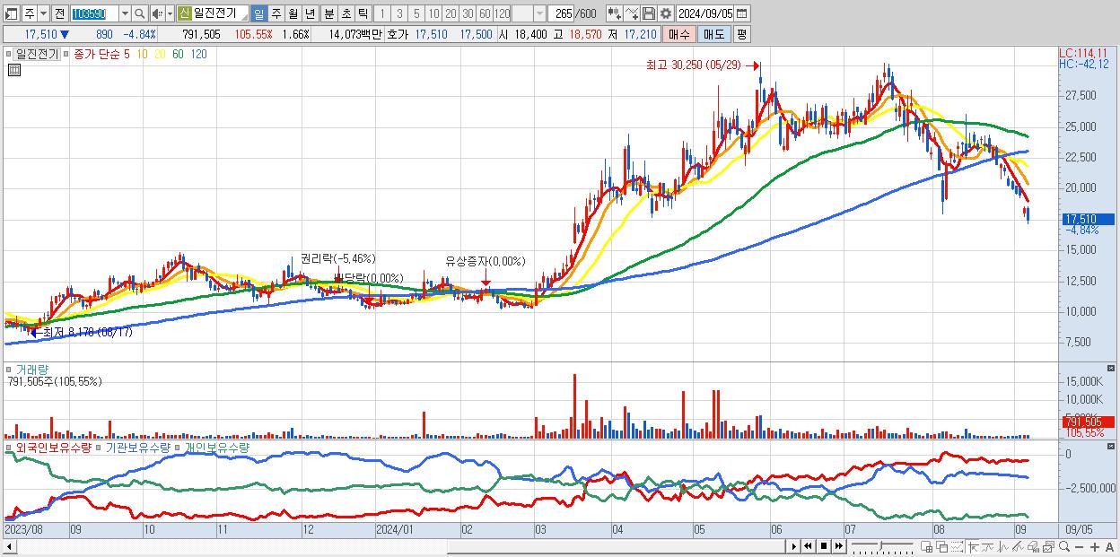 30.일진전기 17,510원 ▼ -4.84% (KOSPI, 103590)