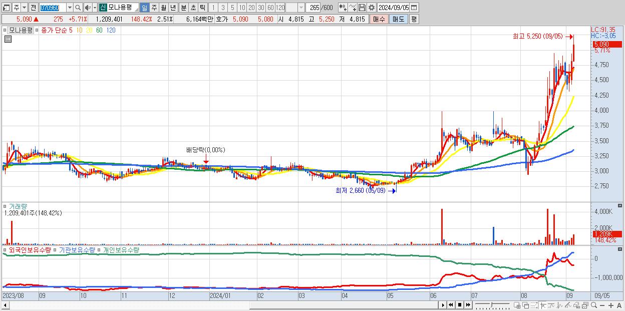 모나용평 5,090원 ▲ 5.71% (KOSPI, 070960)