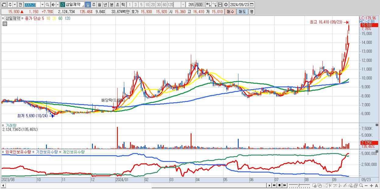 삼일제약 15,930원 ▲ 7.78% (KOSPI, 000520)