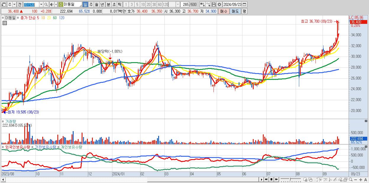 DI동일 36,400원 ▲ 0.28% (KOSPI, 001530)