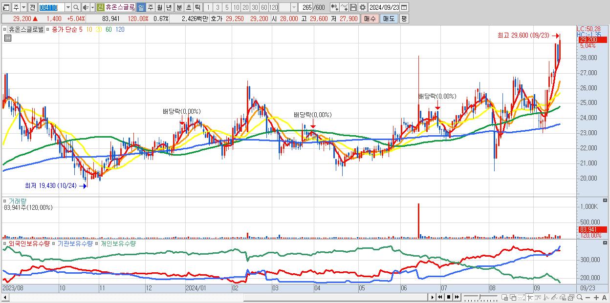 - 휴온스글로벌 (29,200원 ▲ 5.04% , 시총: 3,685억, 거래량: 83,941, 거래대금:24억, KOSDAQ)