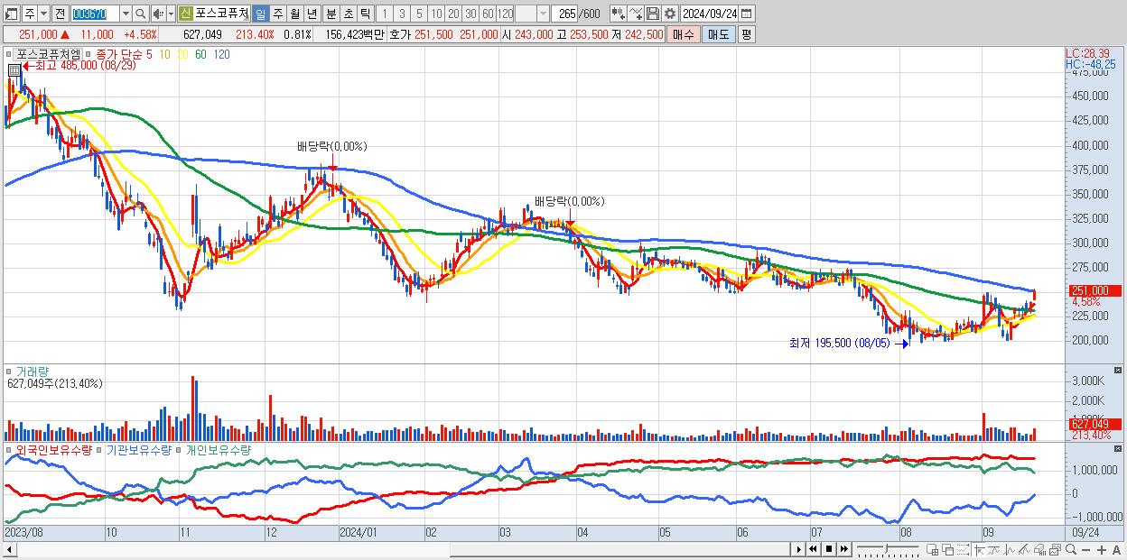- 포스코퓨처엠 (251,000원 ▲ 4.58% , 시총: 194,433억, 외국인 순매수 거래금:117억)