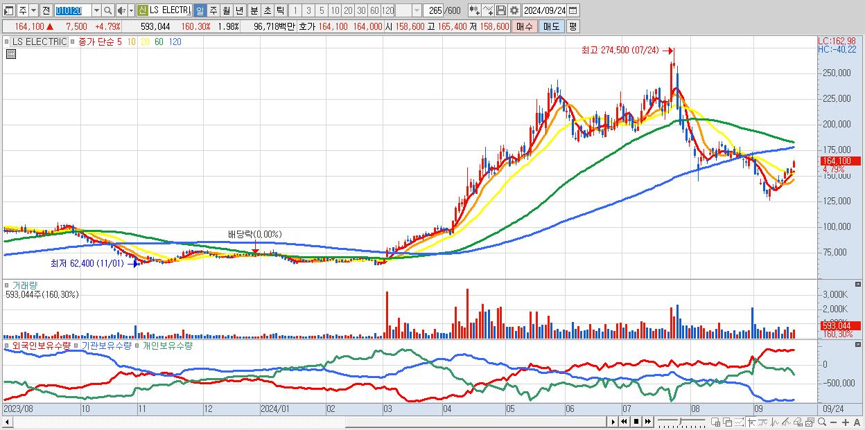 - LS ELECTRIC (164,100원 ▲ 4.79% , 시총: 49,230억, 외국인 순매수 거래금:159억)
