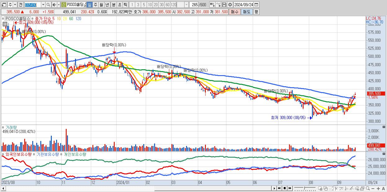 2.POSCO홀딩스 385,500원 ▲ 1.58% (KOSPI, 005490)