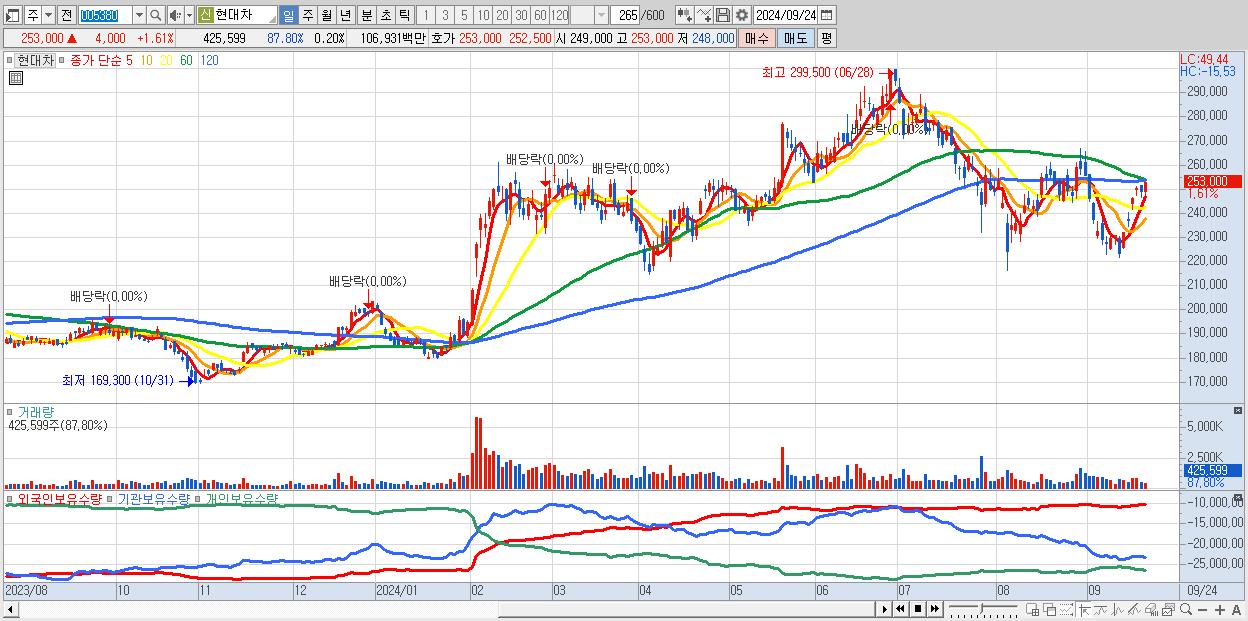1.현대차 253,000원 ▲ 1.61% (KOSPI, 005380)