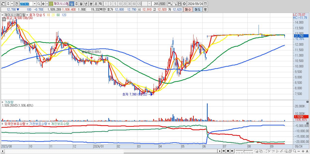 - 제이시스메디칼 (12,790원 ▼ -0.78% , 시총: 9,681억, 외국인 순매수 거래금:50억)